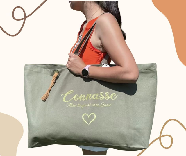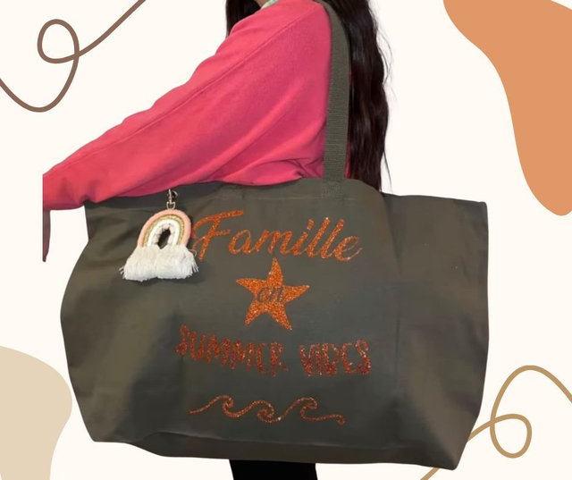 Le sac fourre-tout oversize en toile coton se distingue par son grand volume adapté aux excursions, travail ou shopping. Les anses en toile douce permettent un port à la main ou à l'épaule confortable.